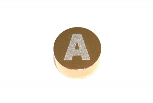 Perline Tonde in Acciaio Alfabeto Oro - Lettera A 10x4,5mm - 1pz