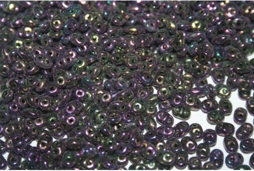 Vendita confezione ingrosso con sconto del 25% di perline Superduo in vetro pressato prodotte in Repubblica Ceca di forma ovale con doppio foro da 0,8mm. Il prezzo si riferisce alla confezione da 100 grammi circa 1350 perline nel colore Iris Purple.