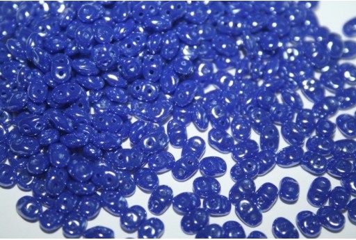 Vendita confezione ingrosso con sconto del 25% di perline Superduo in vetro pressato prodotte in Repubblica Ceca di forma ovale con doppio foro da 0,8mm. Il prezzo si riferisce alla confezione da 100 grammi circa 1350 perline nel colore Matte Sapphire.
